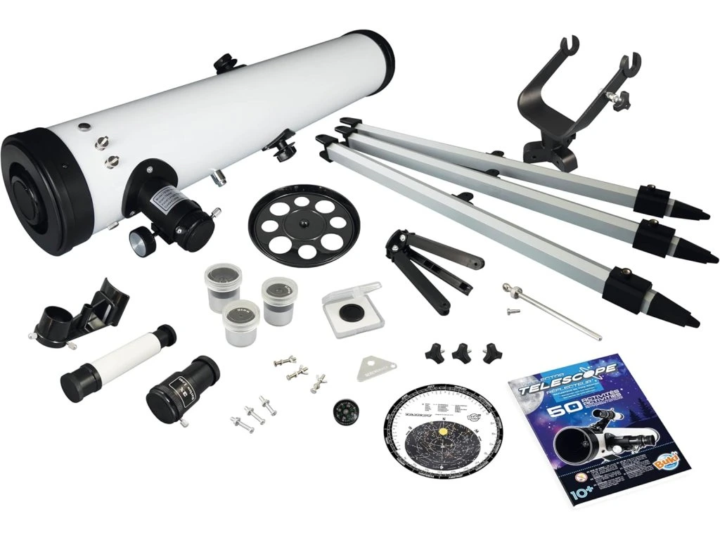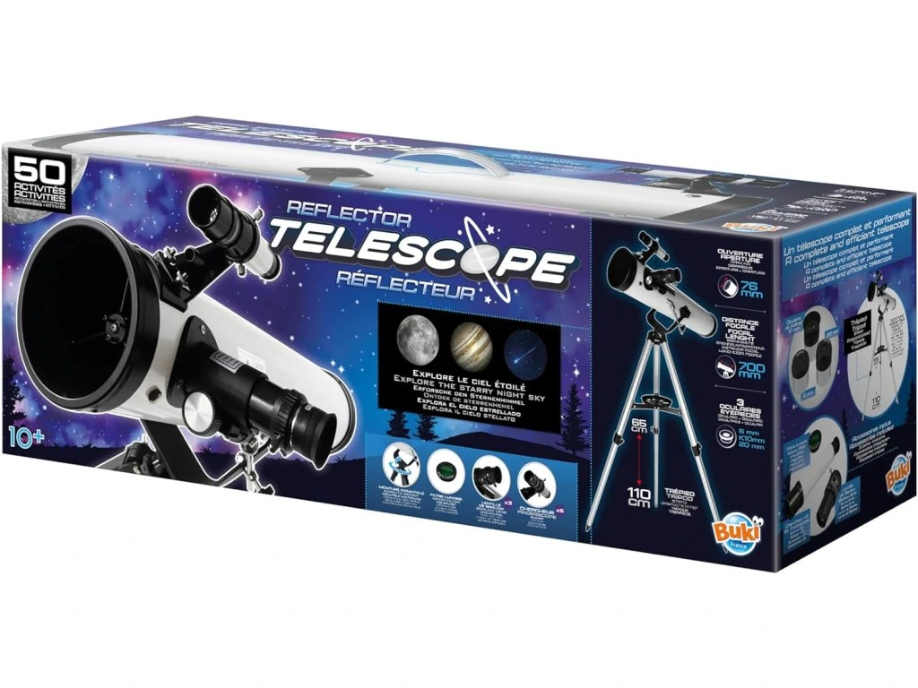 Objavovanie vesmíru nikdy nebolo zábavnejšie! Tento reflektorový teleskop pre deti je ideálnym vstupom do sveta astronómie. Umožňuje pozorovanie Mesiaca, jasných planét aj hviezd a zároveň ponúka množstvo vzdelávacích aktivít, ktoré deti krok za krokom prevedú základmi pozorovania nočnej oblohy.