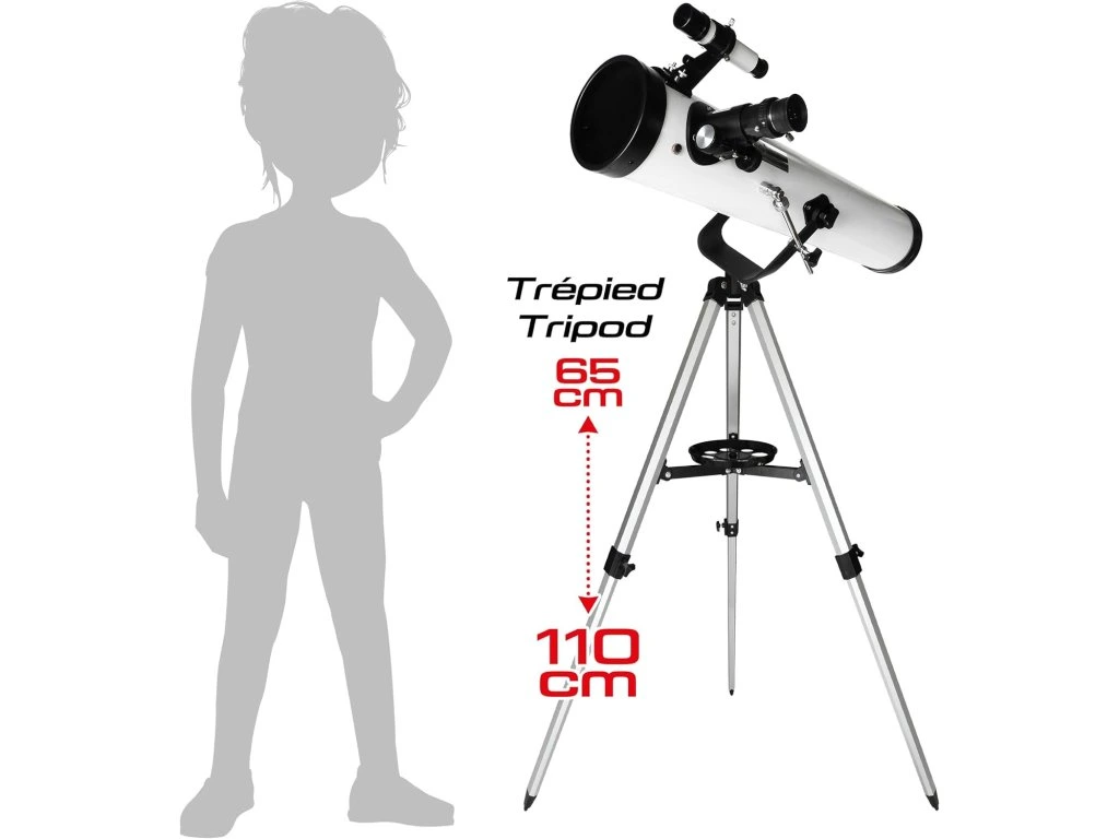 Vďaka pevnej konštrukcii, nastaviteľnému statívu a vymeniteľným okulárom si mladí astronómovia môžu prispôsobiť pozorovanie podľa svojich skúseností – od prvých pokusov až po detailnejšie sledovanie objektov na oblohe.