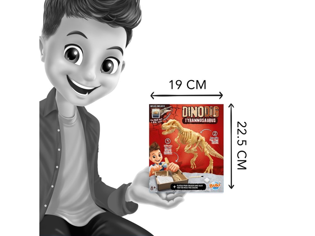 Ako bonus súčasťou sady nájdeš aj skutočný zub Mosasaura (cca 2 cm), ktorý môžeš pozorovať pod lupou v prenosnej zväčšovacej krabičke – ideálny na skúmanie aj nosenie so sebou.
