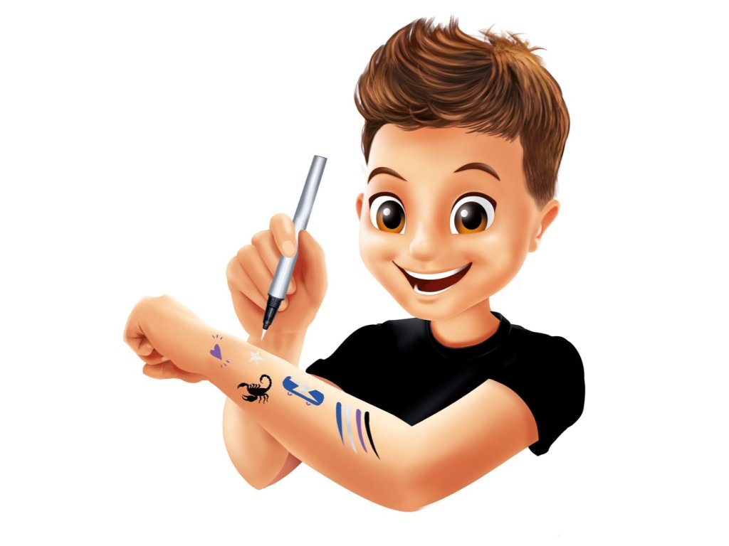 Vytváraj vlastné vzory priamo na pokožke alebo vyfarbuj pomocou šablón.