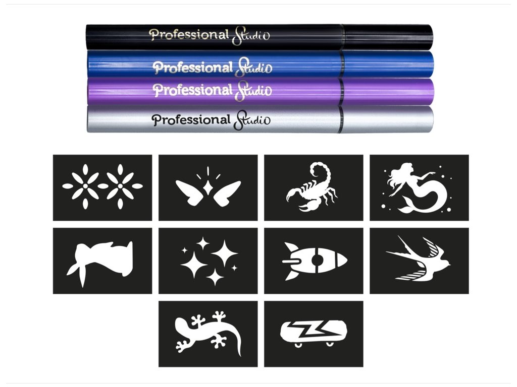 Kozmetické perá na kreslenie dočasných tetovaní v žiarivých farbách so strieborným efektom!
