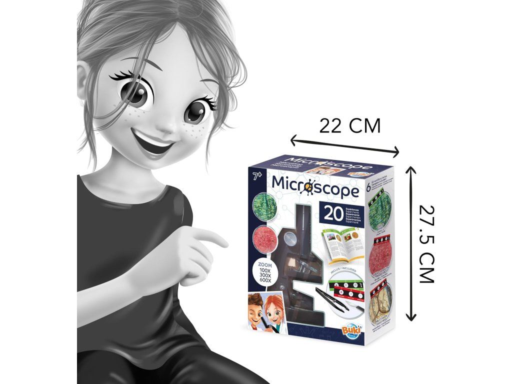 Vďaka trom zväčšeniam až do 600× môžete pozorovať všetko od rastlinných štruktúr až po mikroskopické časti materiálov. Širokouhlý okulár zaručuje väčšiu pozorovaciu plochu a LED osvetlenie zabezpečí jasný obraz pri každom experimente.