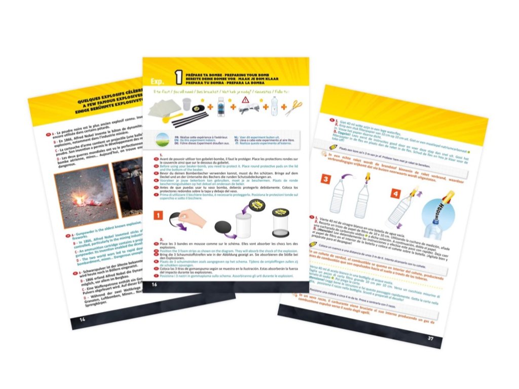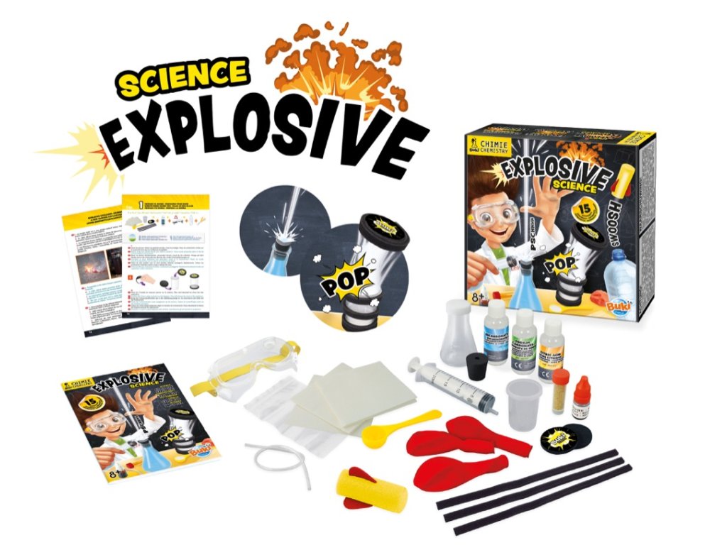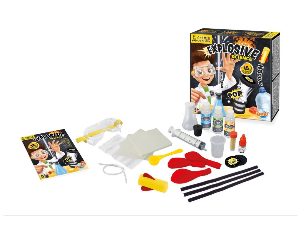 S BUKI – Mladý pyrotechnik si vyskúšaš 15 vzrušujúcich pokusov: postavíš si vlastnú bezpečnú bombu, odpáliš mini raketu, vytvoríš sopečný výbuch alebo šumivú kúpeľovú bombu. Zistíš, prečo praská balónik a čo spôsobí hlasnú ranu papierového sáčku. Každý experiment je navrhnutý tak, aby bol zábavný, poučný a úplne bezpečný.