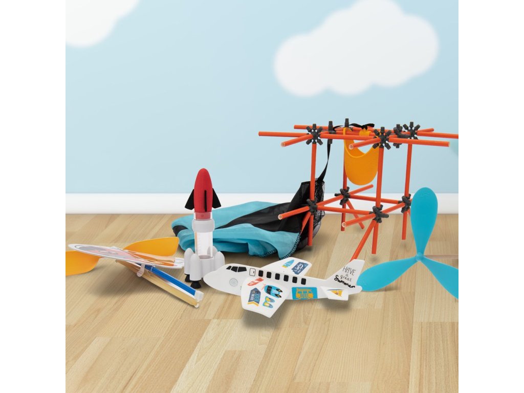 Pilotujte lietadlo, odštartujte vesmírnu raketu, postavte si vlastný padák pre kuracie vajcia, zostrojte vrtuľníky na gumičkový pohon.