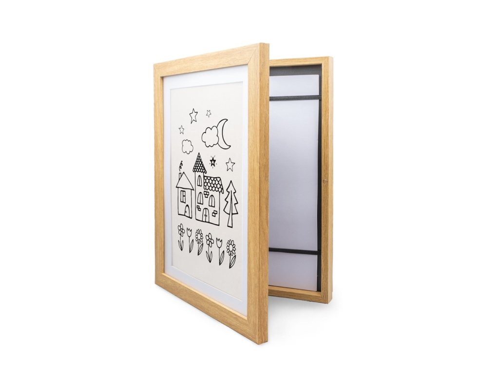Tento rám slúži nielen na zavesenie obľúbenej kresby, ale aj na uloženie až 50 obrázkov vo formáte A4.